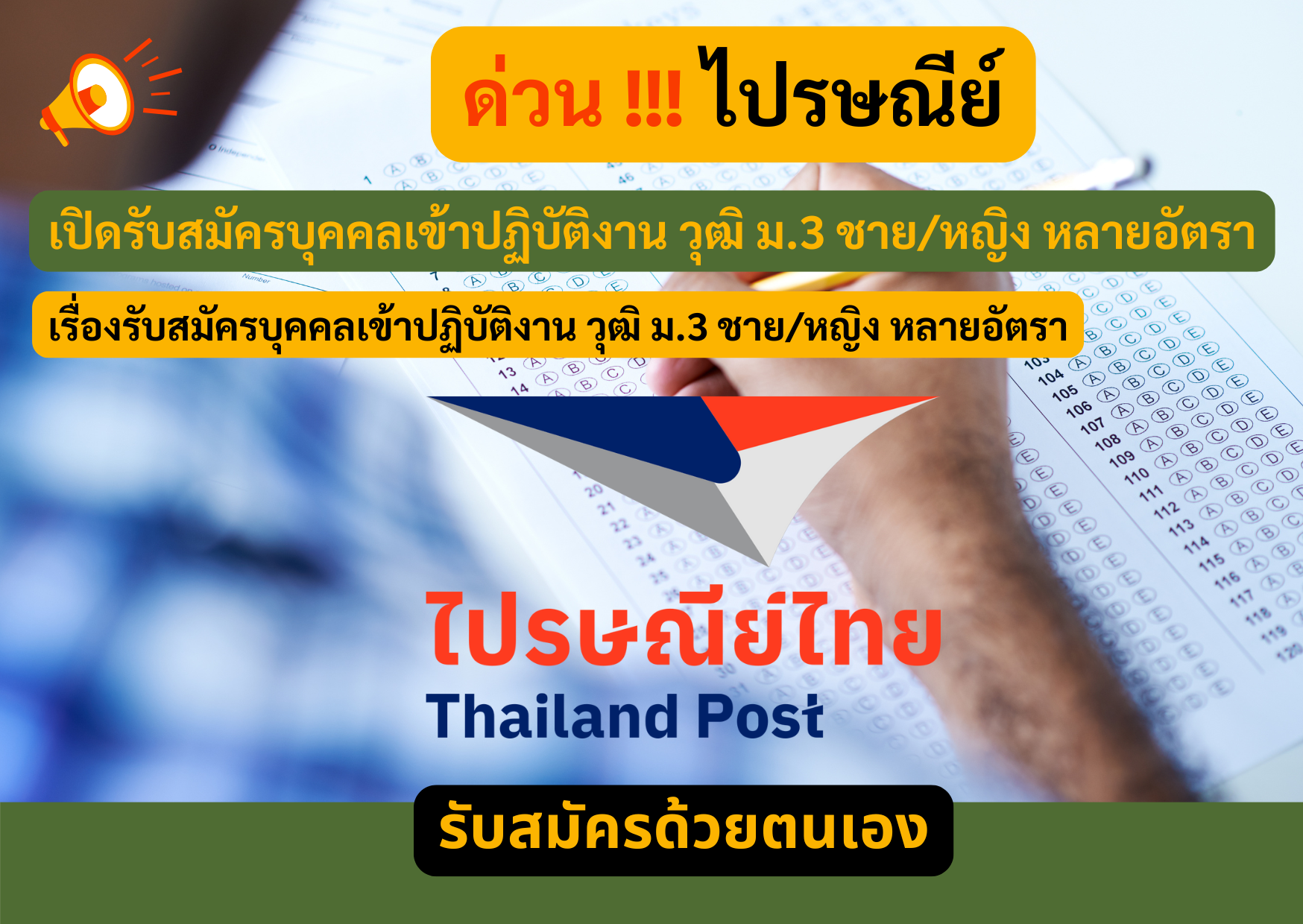 ที่ทำการไปรษณีย์จังหวัดเชียงใหม่ รับสมัครบุคคลภายนอกเข้าปฏิบัติงาน วุฒิ ม.3 ชาย/หญิง หลายอัตรา รับสมัครด้วยตนเอง